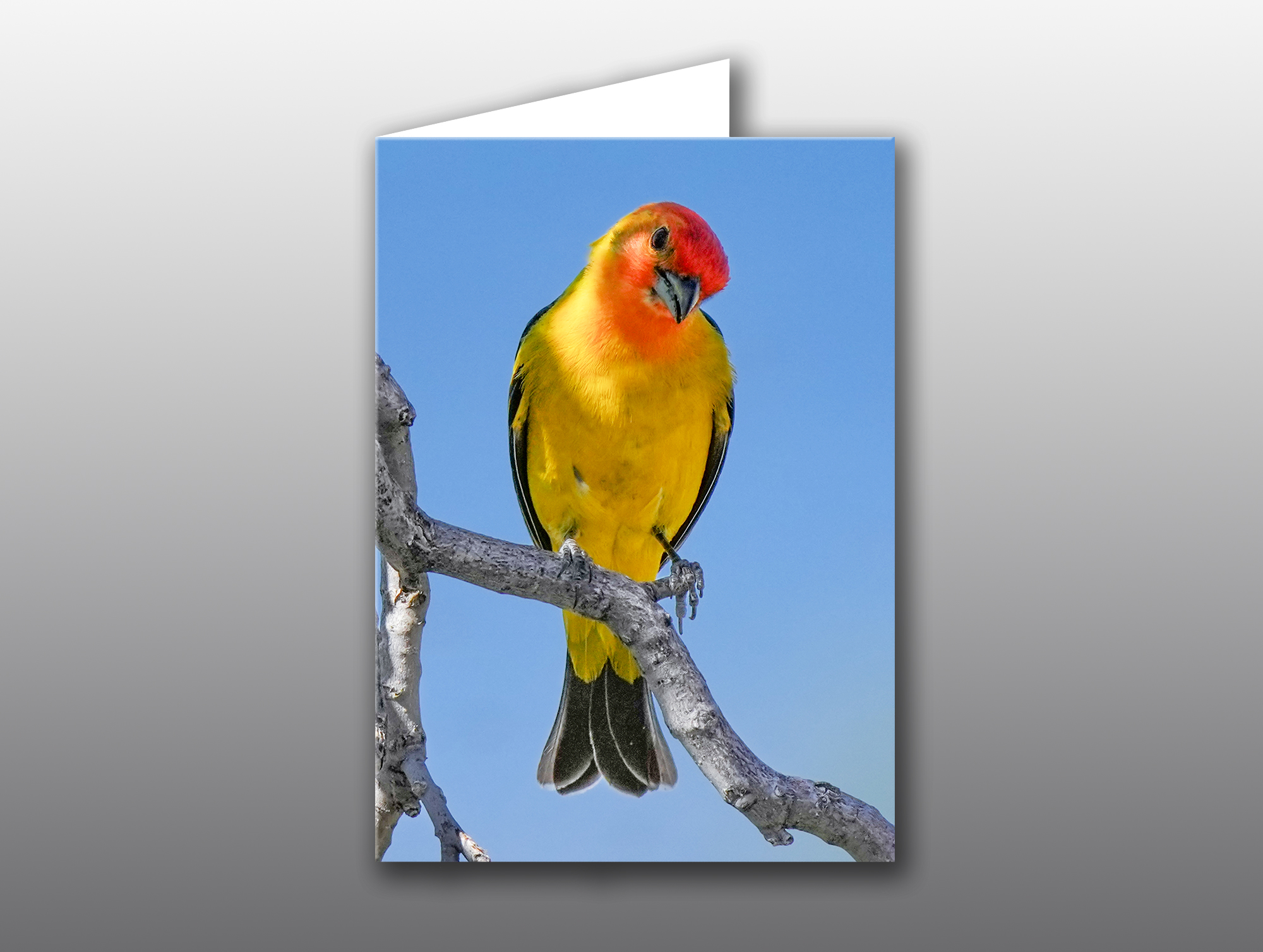 The brilliant plumage of this Western Tanager makes the perfect photo card for the bird lover in your life.