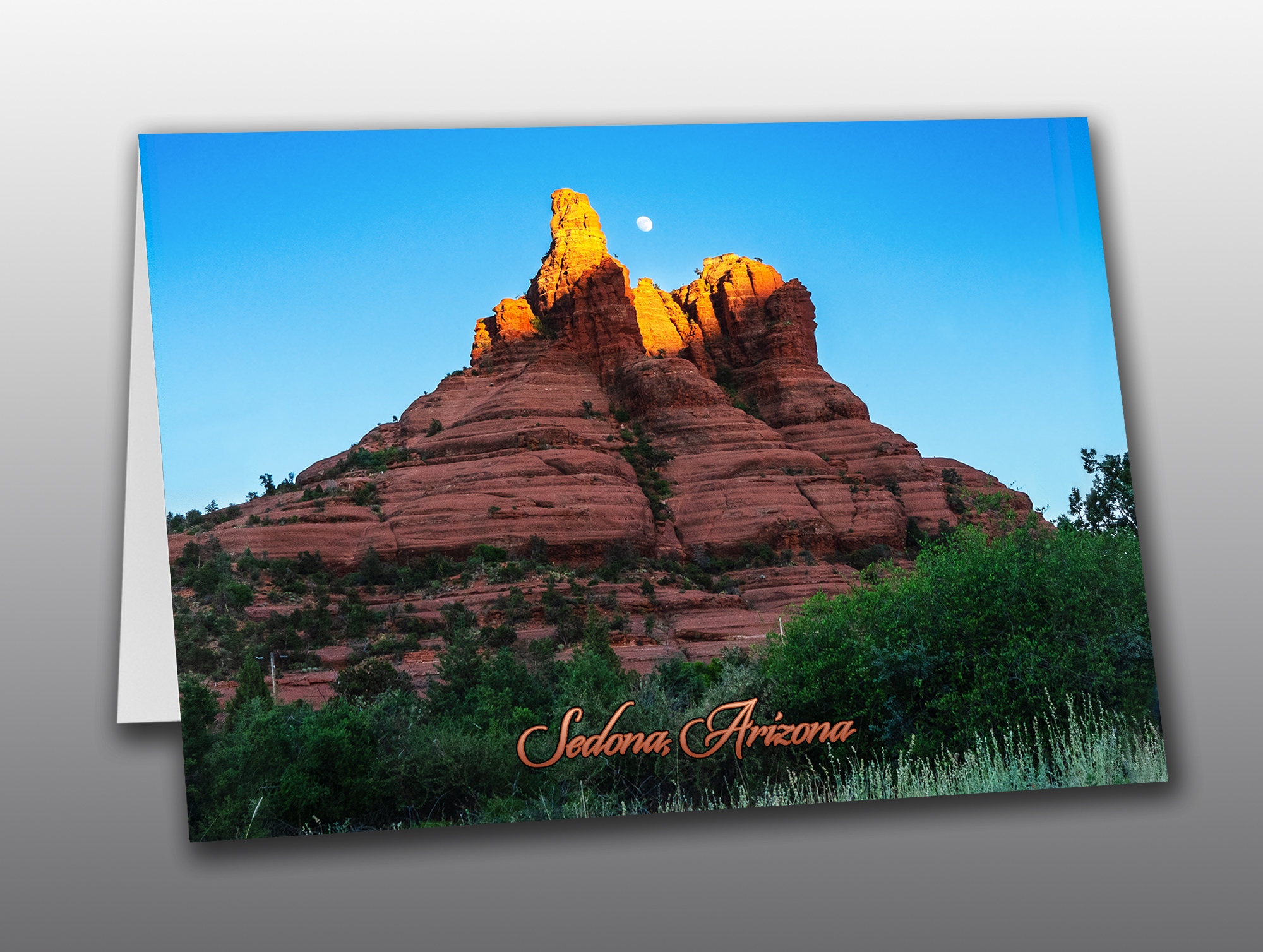 Please choose from ” Sedona, Arizona ”, or No Text on the front of the card.