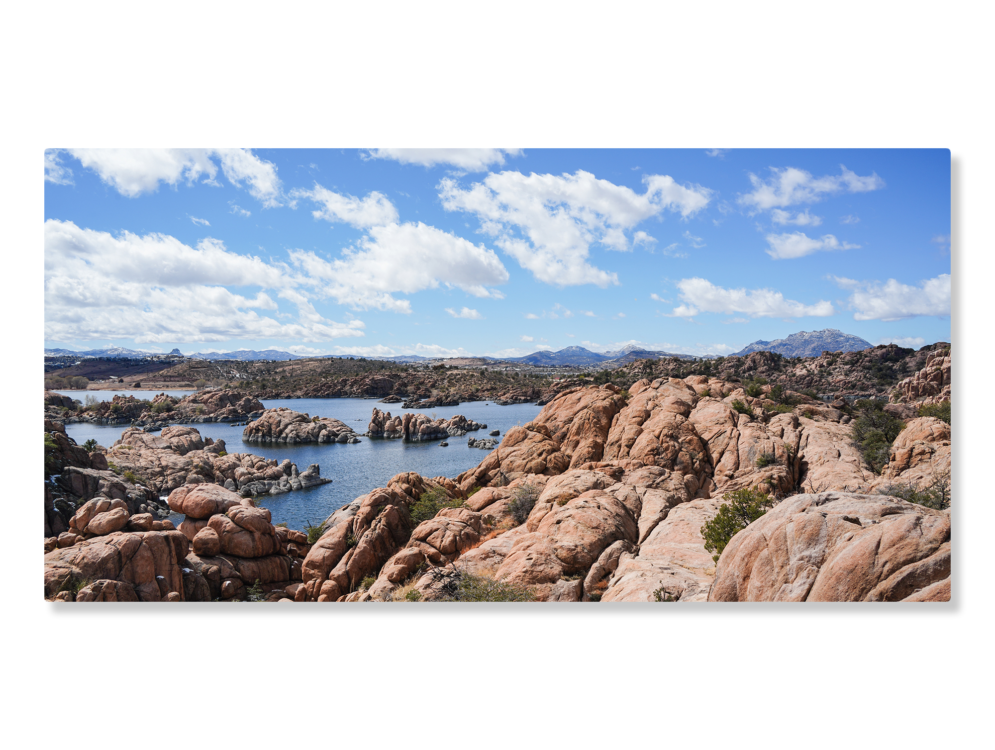 - Watson Lake in Winter with Thumb Butte and Granite Mountain, Arizona Landscape – Metal Print Wall Art